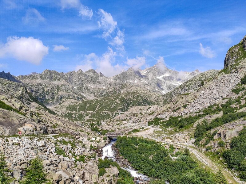 Wir durchqueren das gesamte bezaubernde Nambrone-Tal, das hier Val Nambrone genannt wird, mit dem Auto. Zusammen mit seinen Seitentälern formt es im Presanella-Massiv ein großes Dreieck. Das Val Nambrone zweigt bei Sant'Antonio di Mavignola bei Pinzolo und Madonna di Campiglio ab und führt 13 Kilometer weit, teilweise als enges Tal, bis zu einem Schotter-Parkplatz.