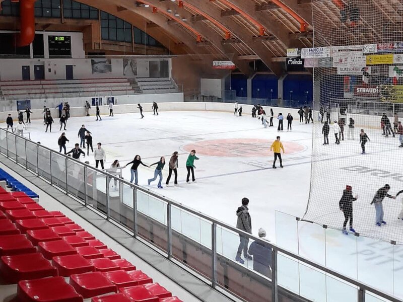 Im Winter geht der Eislaufspaß nicht nur im Stadion über die Bühne, sondern auch auf dem nahe gelegenen zugefrorenen Smeraldo-See, der ein einzigartiges Eislauferlebnis in herrlicher Umgebung bietet.