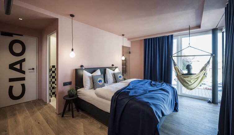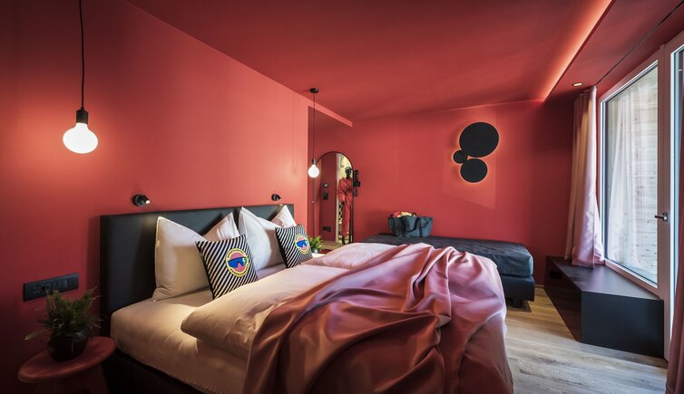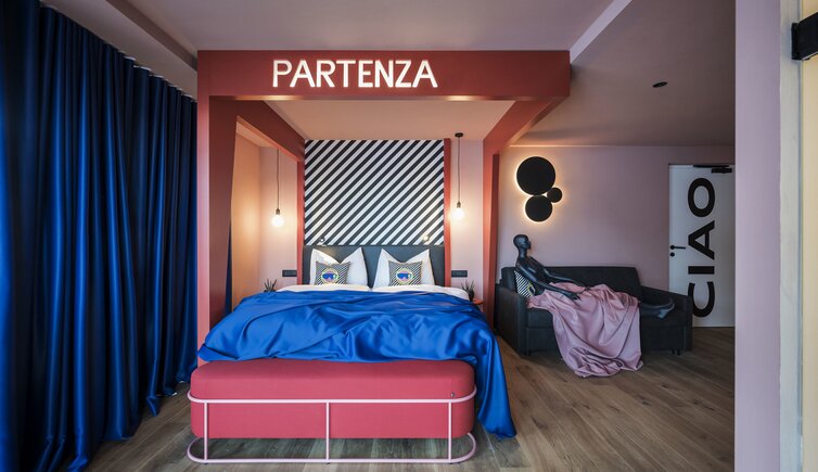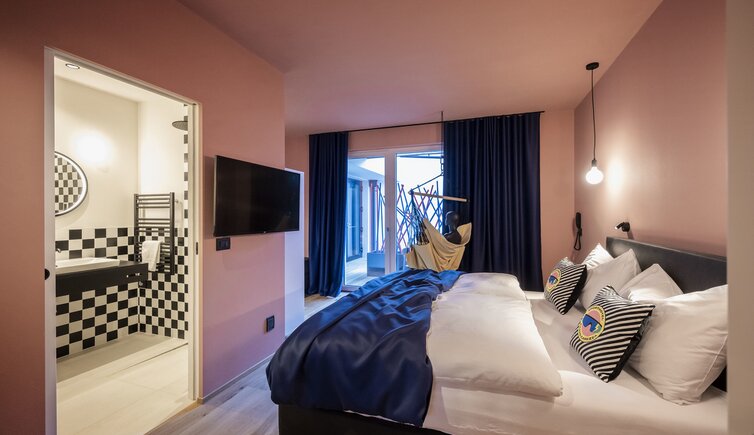 Kleine, aber sehr spezielle bunte Zimmer mit jeglichem Komfort und ganz im Zeichen des Sports gestaltet, warten auf dich.