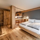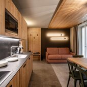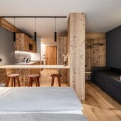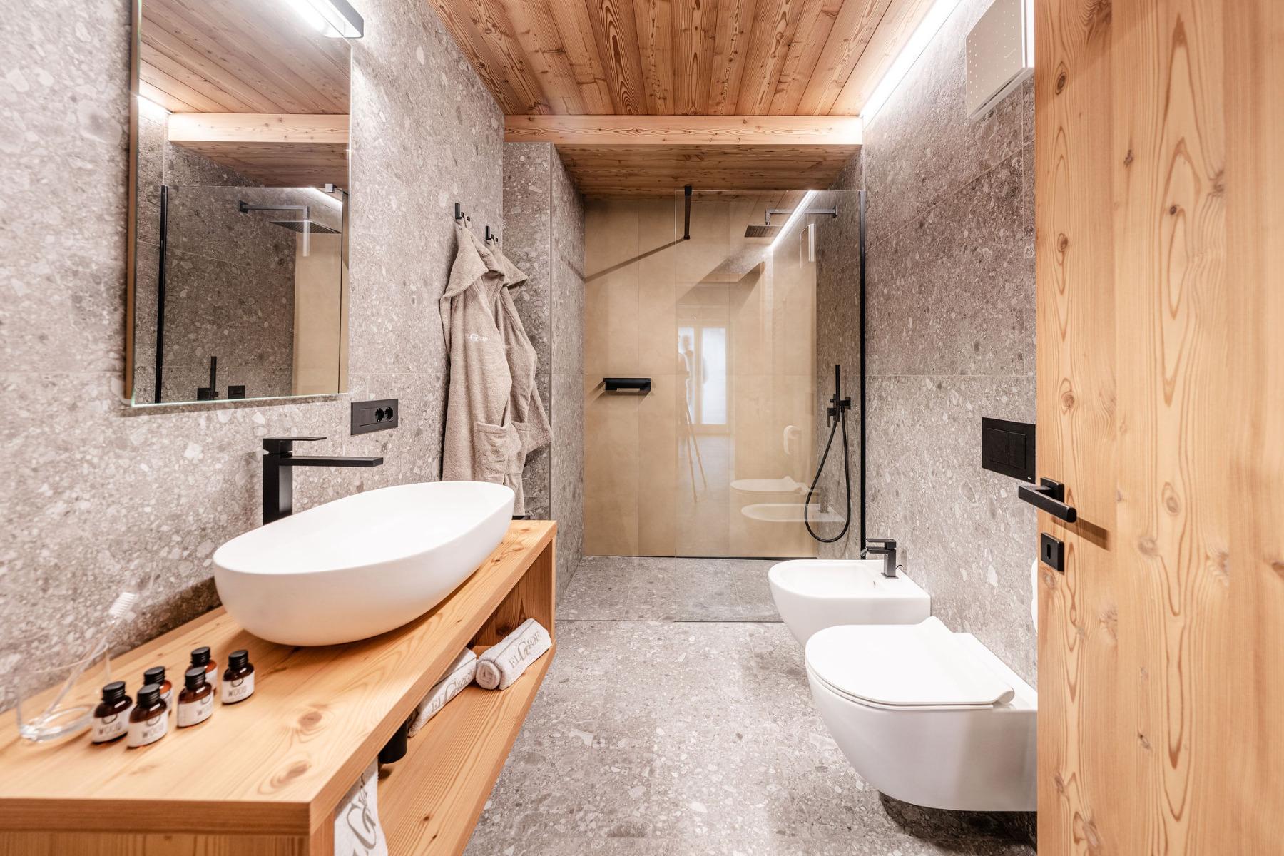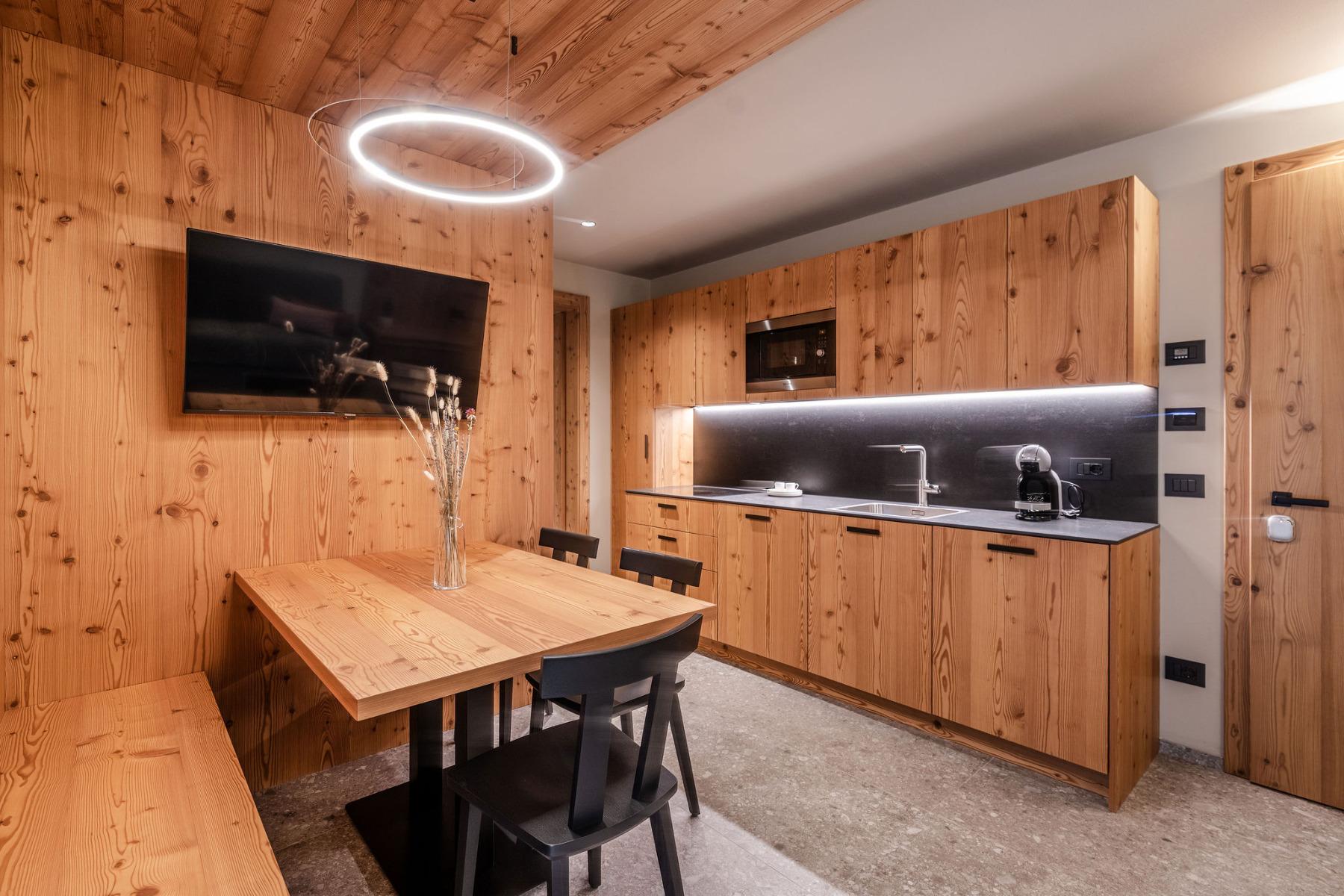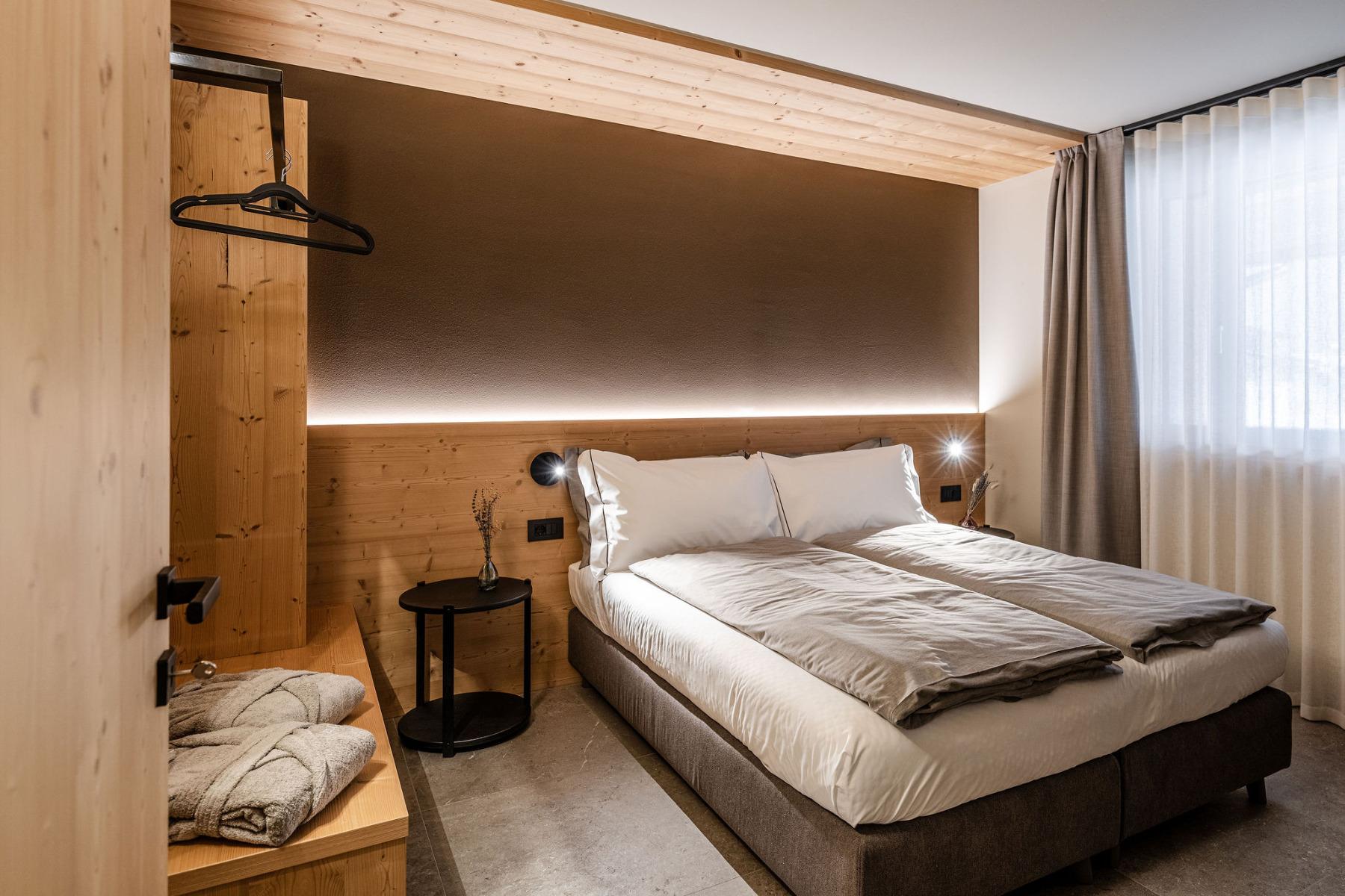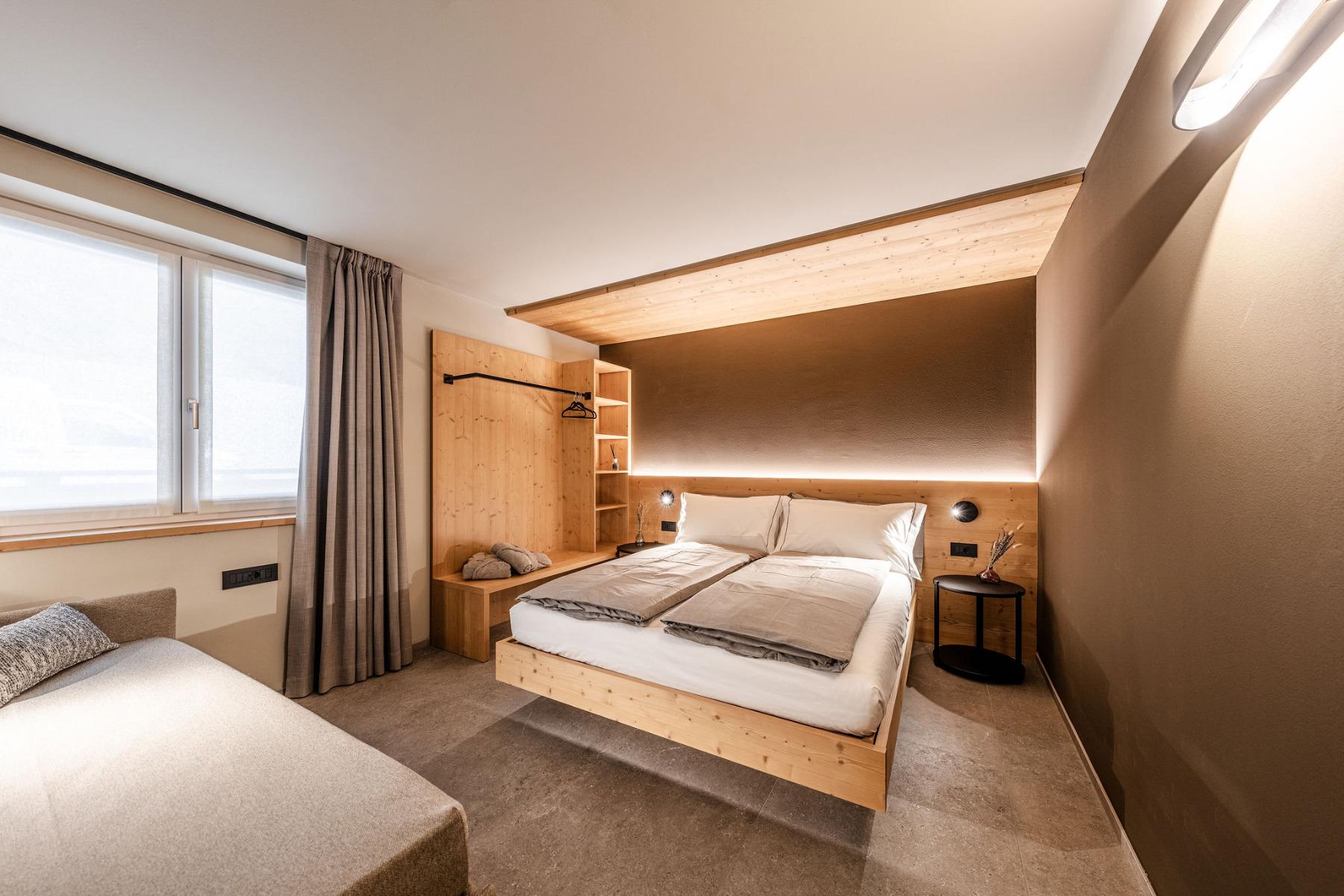 Die 12 modernen Apartments wurden mit Lärchen- und Fichtenholz eingerichtet.