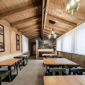 Vor Ort befinden sich Parkplätze, ein Skidepot, Aufladestationen für E-Bikes und E-Autos und ein gemütlicher Garten.
