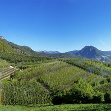 We cycle along the field paths through the orchards of Mechel, a hamlet of the municipality of Cles. Having passed the village of Tuenno at the entrance to the Valle di Tovel, we continue along the edge of the forest and towards south at the foot of Mt Sabbionare.