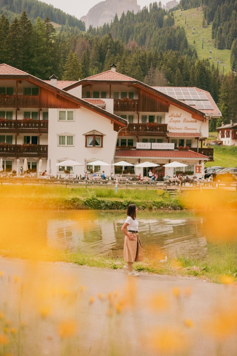 The Lupo Bianco Bio Hotel is located in the middle of the breathtaking mountain scenery of the Dolomites of the Val di Fassa.