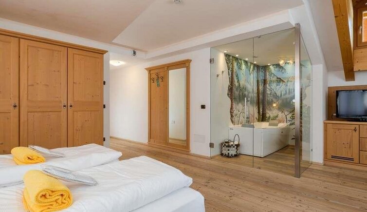 Charming rooms in a typical Alpine style, complete with wooden floors and furniture, some even with private balconies, promise cosy and relaxing hours.