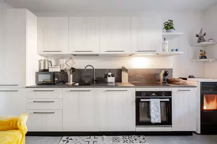 The apartment boasts a bedroom with queen-size bed (bed linen included), a living room with TV, a completely equipped kitchen, a double sofa bed, a bathroom with window, spacious shower, hygiene products, towels and a hairdryer, as well as a laundry room.