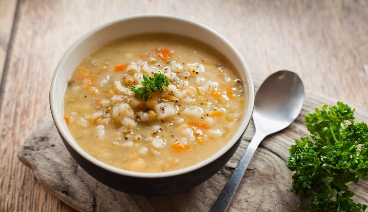 - Chicchi d'orzo perlato mantecati alla zucca gialla, stravecchio di Modena e croccante di maialino.