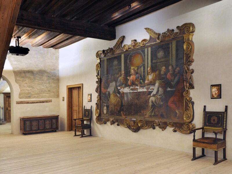 Concludi la tua affascinante visita ammirando lo stupendo ciclo di affreschi rinascimentali, dipinti quasi sicuramente da Marcello Fogolino, e la straordinaria collezione di opere attribuibili ai migliori artisti della Scuola Pittorica di Fiemme.
