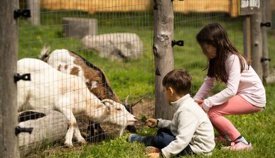 La prima vacanza in montagna è fatta di piccole scoperte: l'erba sotto i piedi nudi, il muso morbido di una capretta, il profumo del bosco dopo la pioggia.