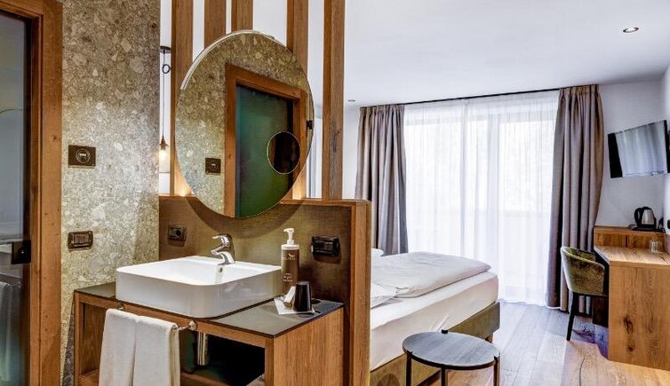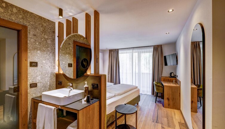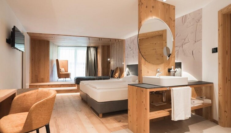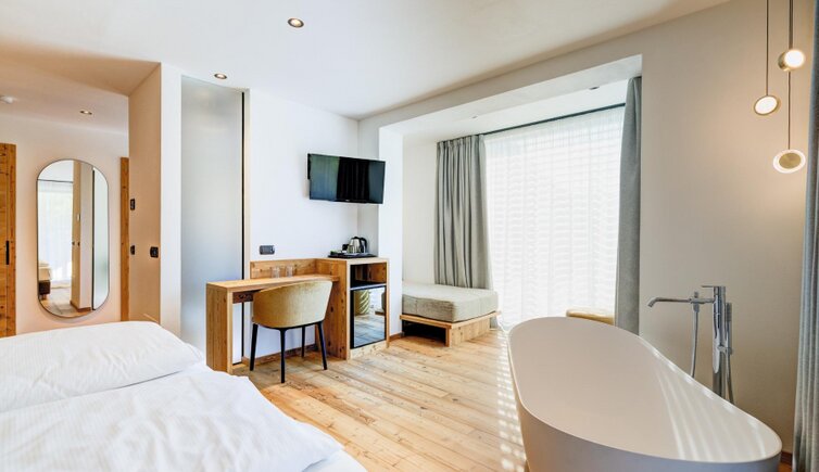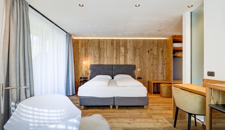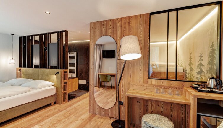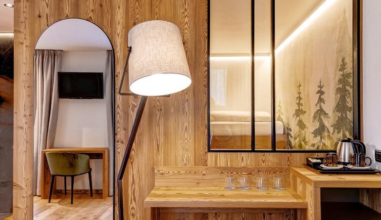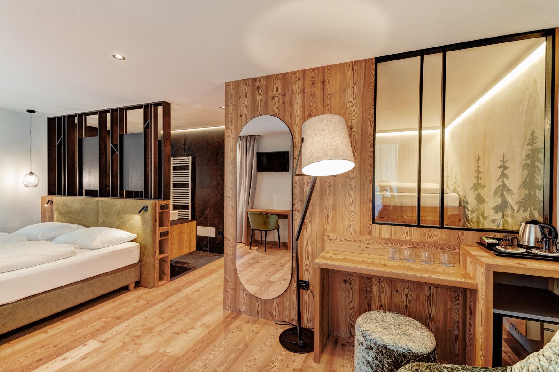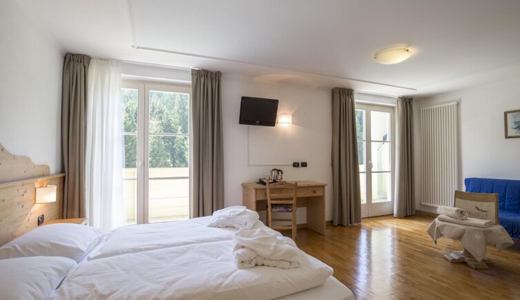 Dalle piscine, interna ed esterna, potrai ammirare una vista magnifica sulla catena del Lagorai. Le camere, ampie e accoglienti, sono arredate con mobili in legno tipico della Val di Fiemme.