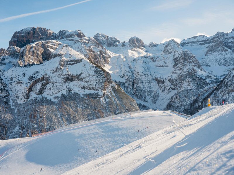 L’area sciistica di Pinzolo, ai piedi del Monte Doss del Sabion, è ora collegata alle piste di Madonna di Campiglio