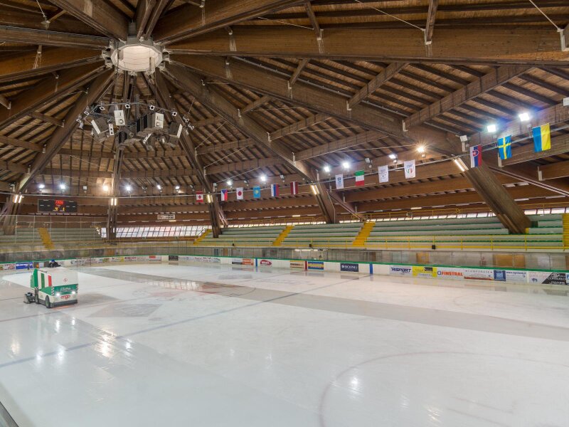 Al palazzo del ghiaccio di Cavalese il divertimento sui pattini è assicurato. Ti attende una pista di pattinaggio coperta a forma di diamante, di dimensioni 30x60 metri, dove è possibile pattinare sia in estate che in Inverno.