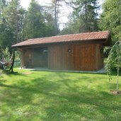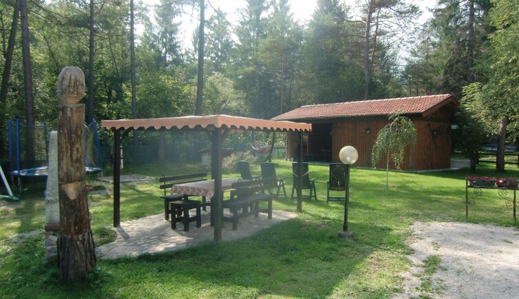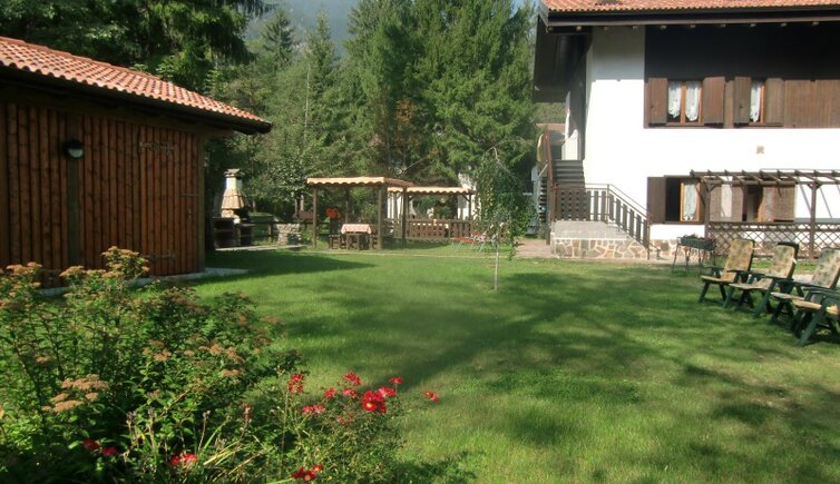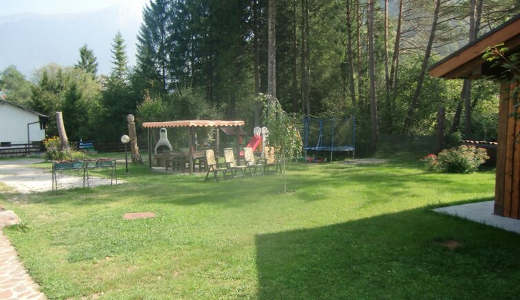 All’ interno del parco della casa troviamo un piccolo parco giochi per bambini attrezzato con casetta “Amicizia”, scivolo, altalena e sabbiera, uno spazio comune per rilassarsi su comoda amaca all’ombra di pini e abeti, la legnaia e un’area riservata al posteggio delle auto.