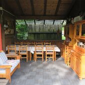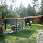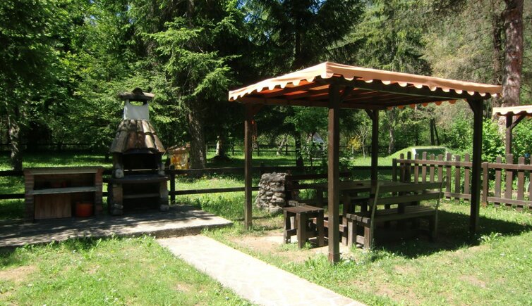 L’ appartamento ha il proprio giardino attrezzato con pergolato in legno, tavolo con panche, barbecue e sdraio.