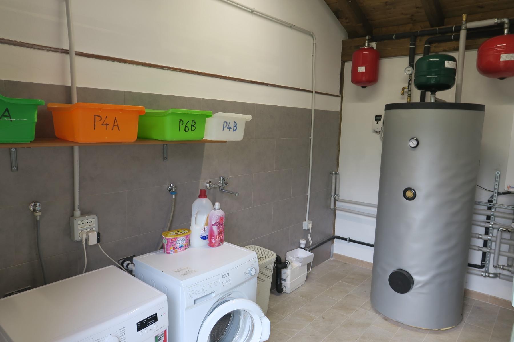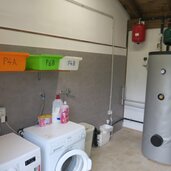 Nel piano seminterrato della casa sono presenti un locale ad uso lavanderia con due lavatrici e un deposito per mountaibike e attrezzatura estiva.