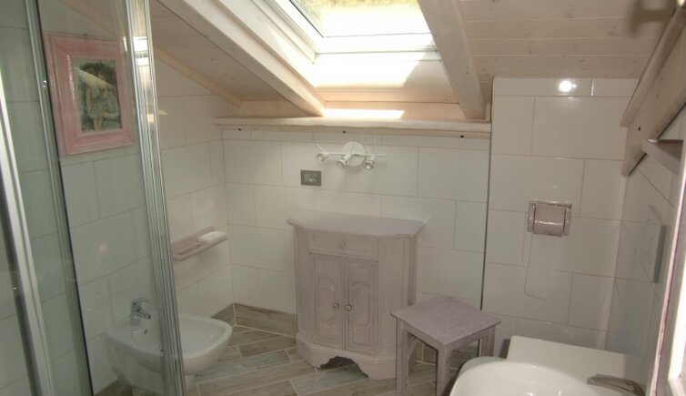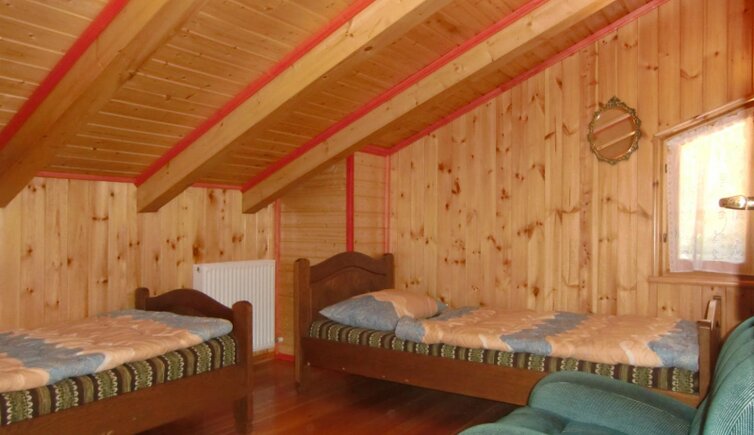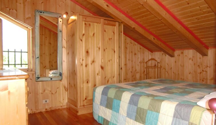 Con scala interna in legno si raggiunge il piano mansardato, dove troviamo una camera con letto matrimoniale, una camera con 2 letti singoli e bagno secondario con doccia e toilette.
