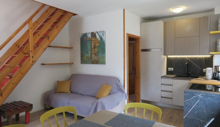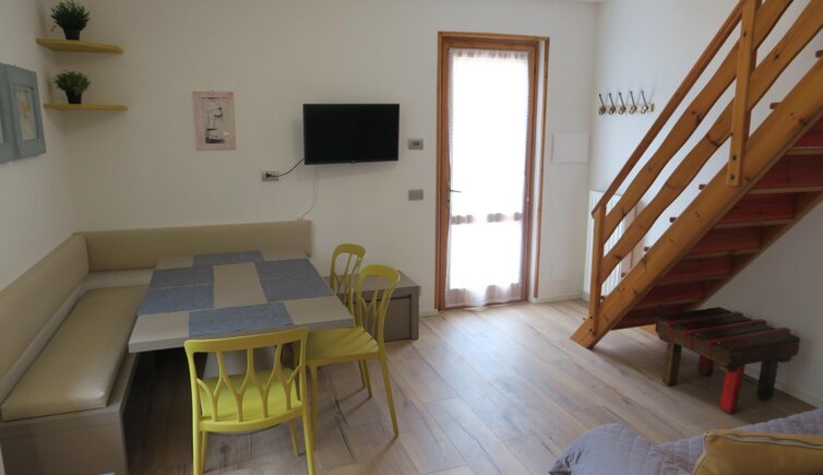 L’ appartamento al primo piano “Pippi 6/A”, ideale per 4-6 persone, e’ disposto su due livelli: il primo piano e’ composto da soggiorno arredato, angolo cottura attrezzato, disimpegno, una camera con letto matrimoniale e balcone e bagno con doccia e toilette.