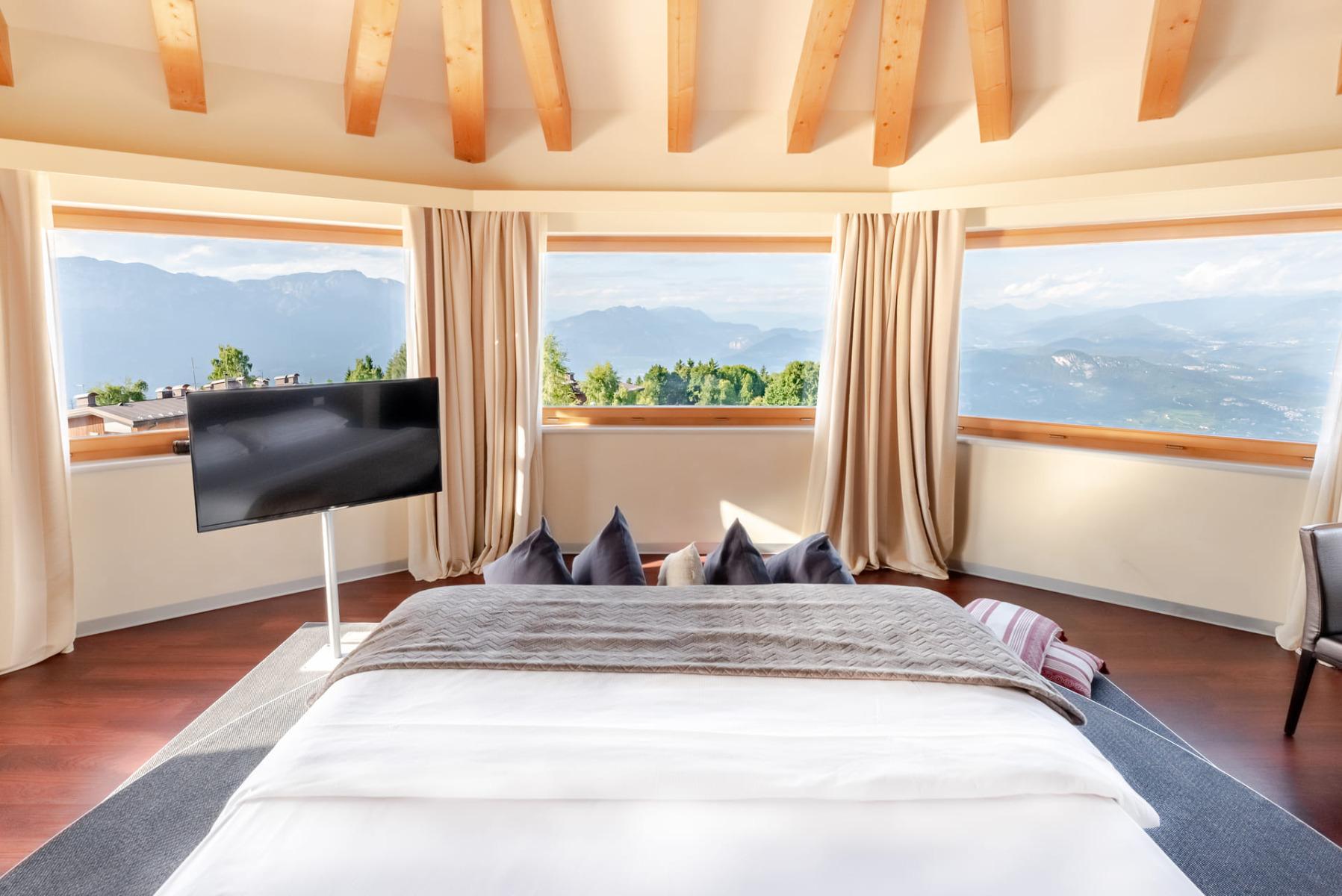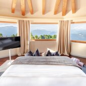 Assapora il riposo assoluto nelle confortevoli camere, arredate in un moderno stile romantico, oppure nella suite panoramica con vasca idromassaggio e una vista incantevole sulle Dolomiti.