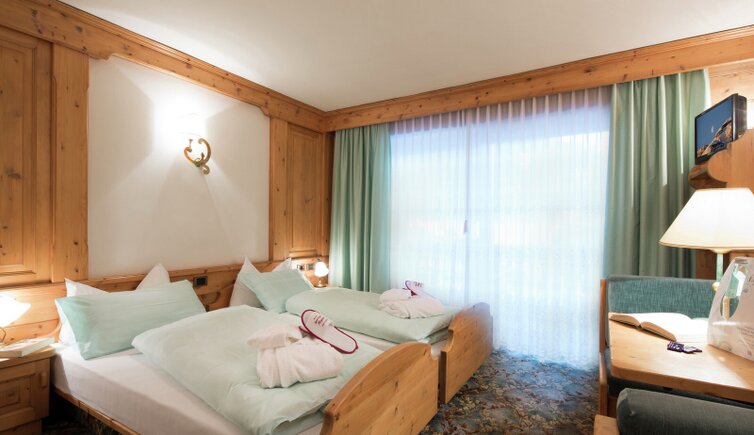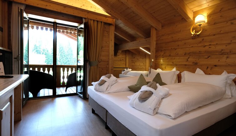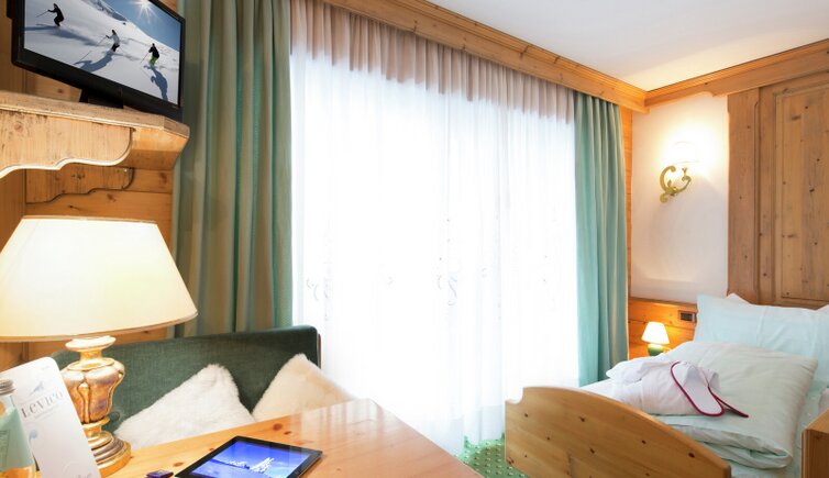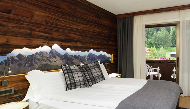 Le camere e le suite dell’hotel regalano una splendida vista sulle Dolomiti, che potrai ammirare direttamente dal tuo balcone.