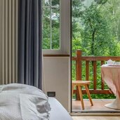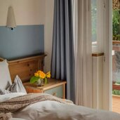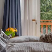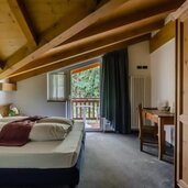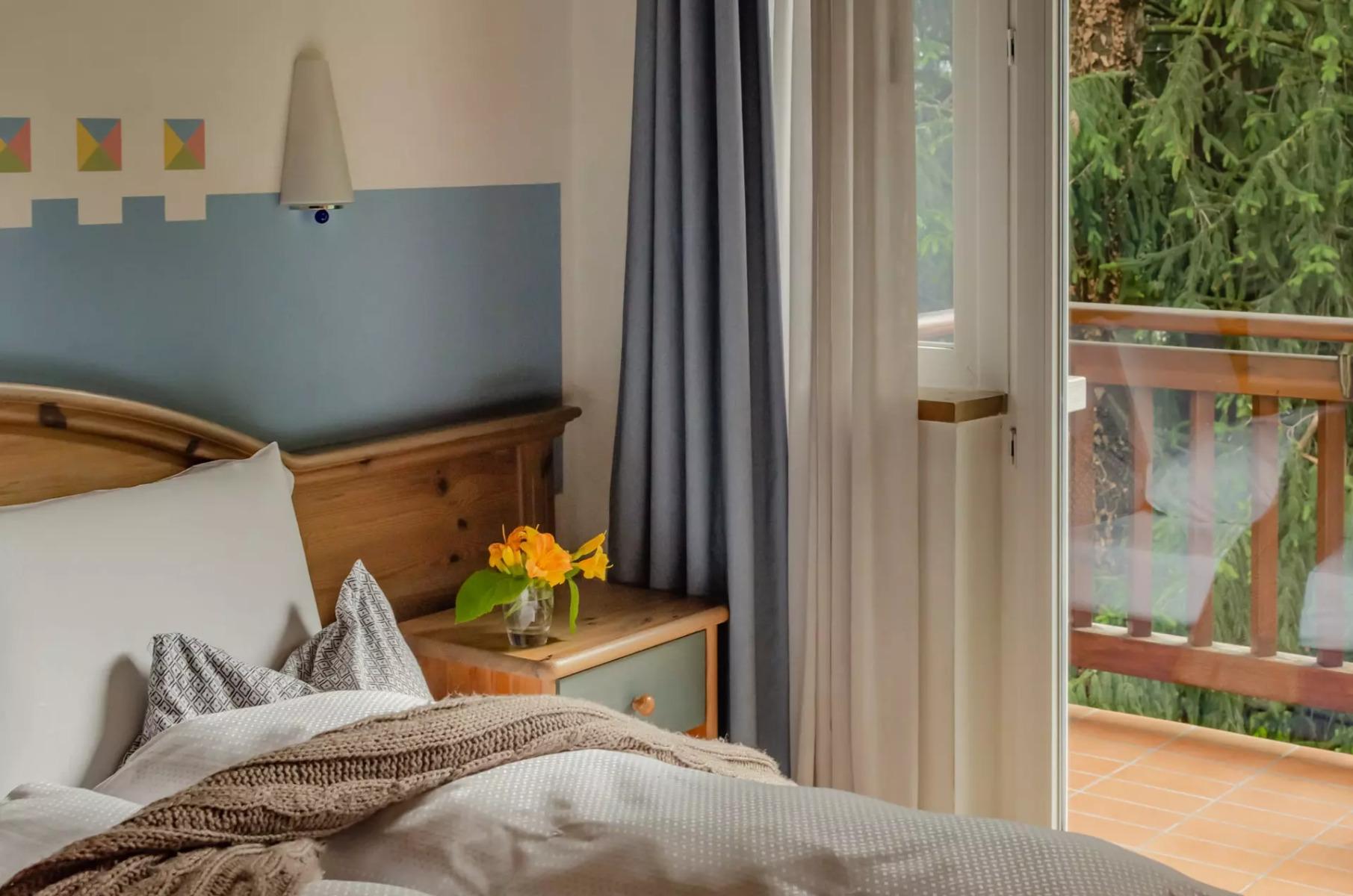 Quasi tutte le camere dispongono di balcone privato e regalano una splendida vista sul giardino o sulla Val di Sole.